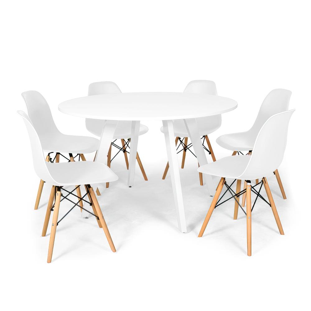Conjunto Mesa de Jantar Redonda Amanda Branca 120cm com 6 Cadeiras Eames Eiffel