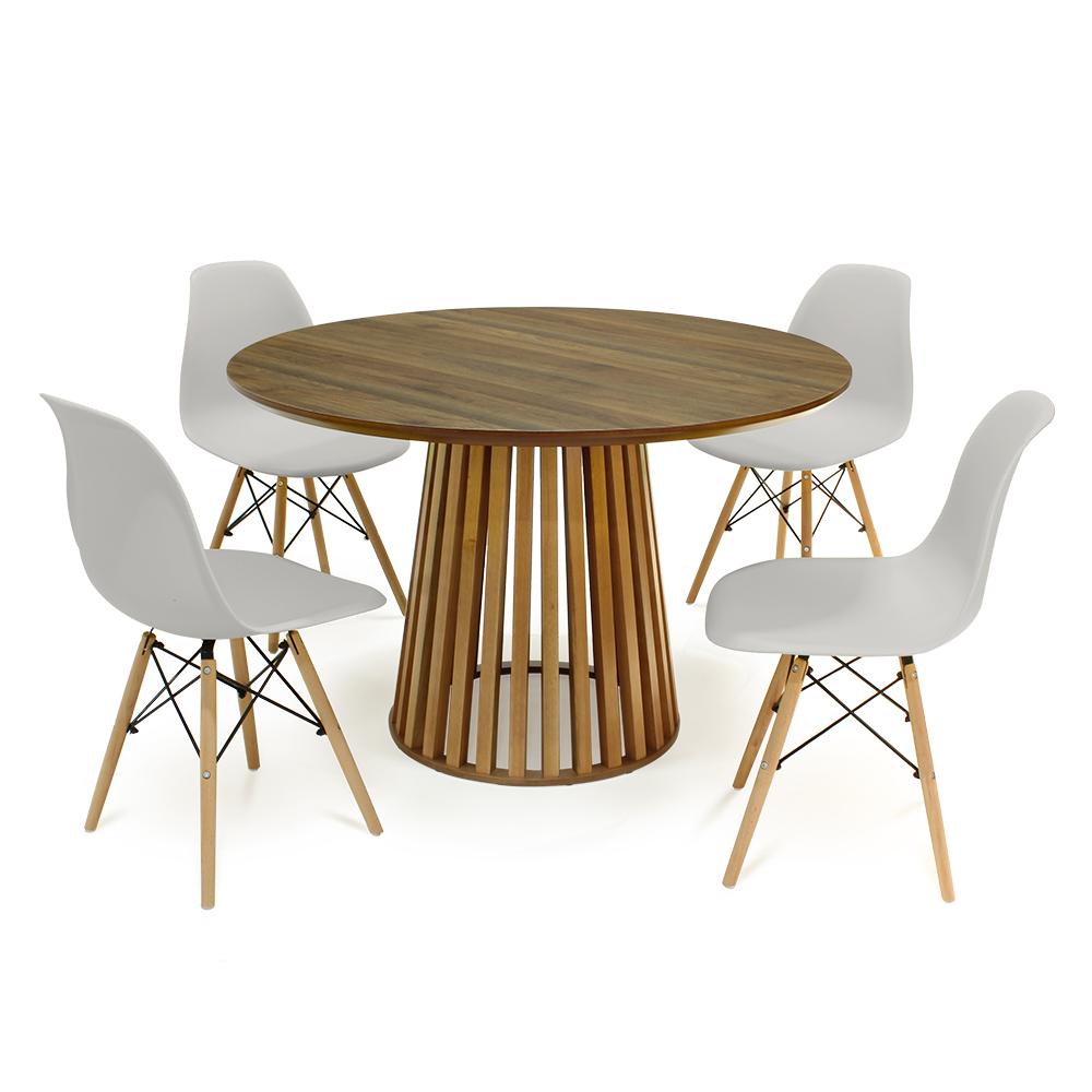 Conjunto Mesa de Jantar Redonda Cecília Amadeirada Branca 120cm com 4 Cadeiras Eames Eiffel - Branco