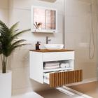Gabinete Armário Para Banheiro 60 cm Com Espelho E Cuba Branco Naturalle Ripado Brun II Shop JM