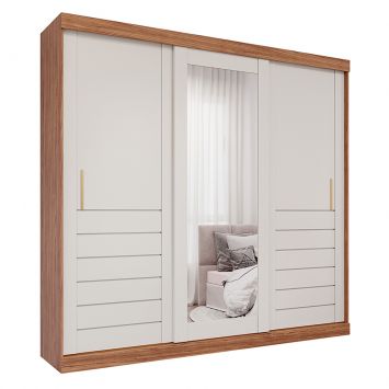 Guarda-Roupa Casal com Espelho Cecília sem pés 3 PT 6 GV Cinamomo e Off White