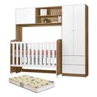Quarto de Bebê Retro Completo Berço e Guarda Roupa 100% Mdf Zara Branco/Nature