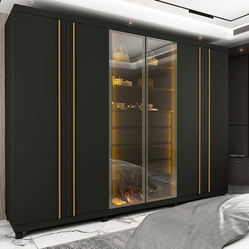 Guarda Roupas Casal 6 Portas com Pés e LED Absolut New Reflecta Grafite - Preto