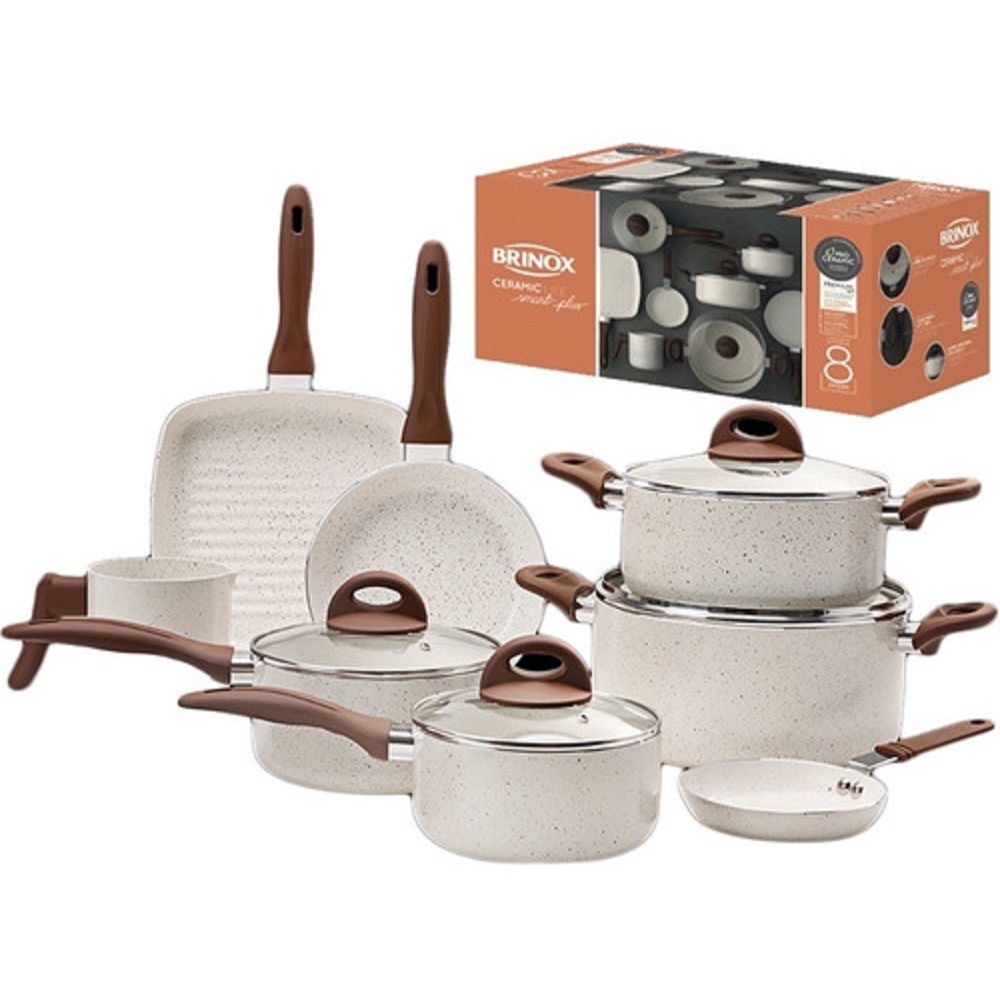 Jogo Panela 8pçs Ceramic Life Smart Plus Vanilla 4791 Brinox