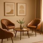 Kit 4 Poltronas Decorativas Para Sala, Escritório, Recepção Beatriz Suede Nude Pé Castanho - Clique E Decore