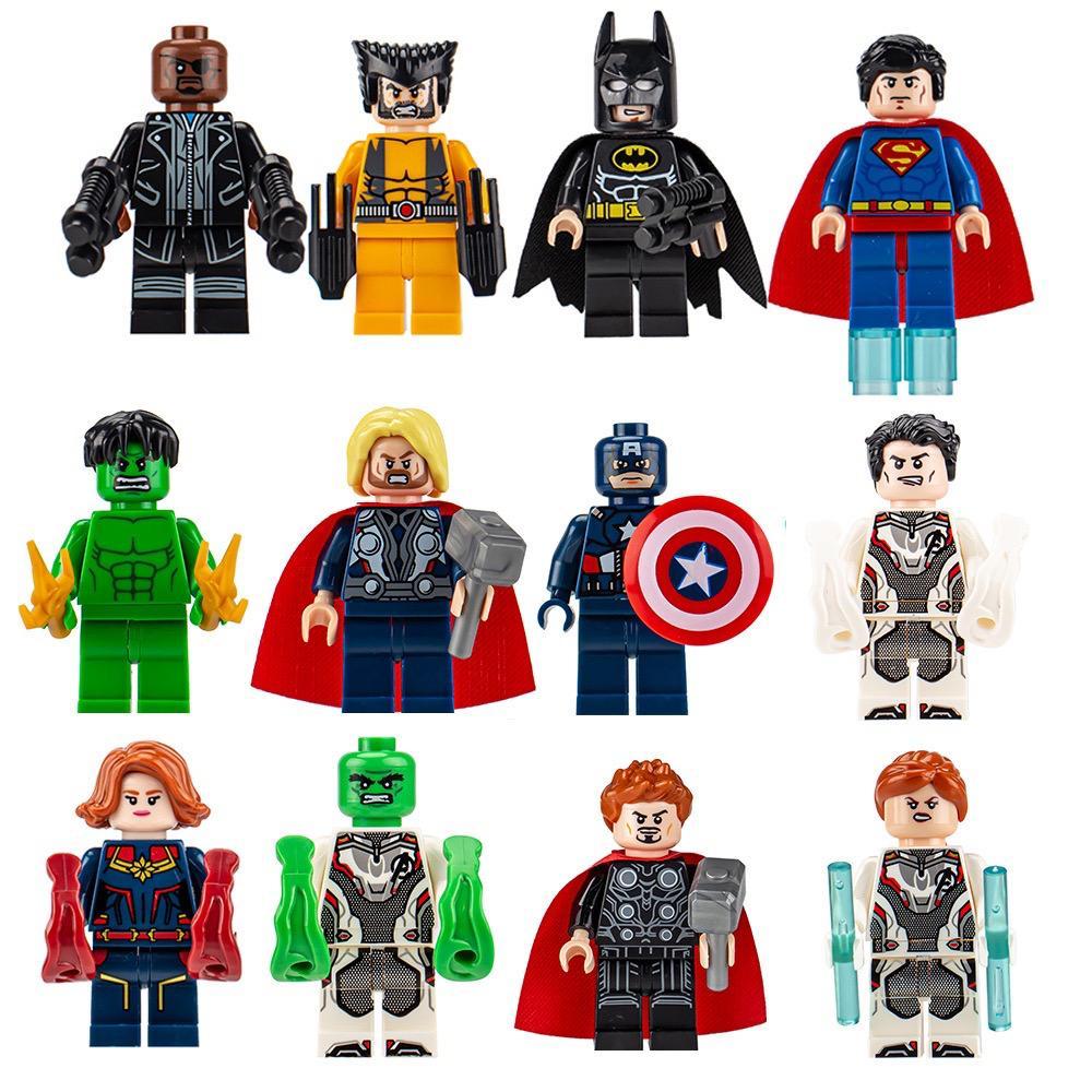 Lego Vingadores Marvel Hulk, thor, capitão, viuva negra, nick fury, wolverine, batman, Superman