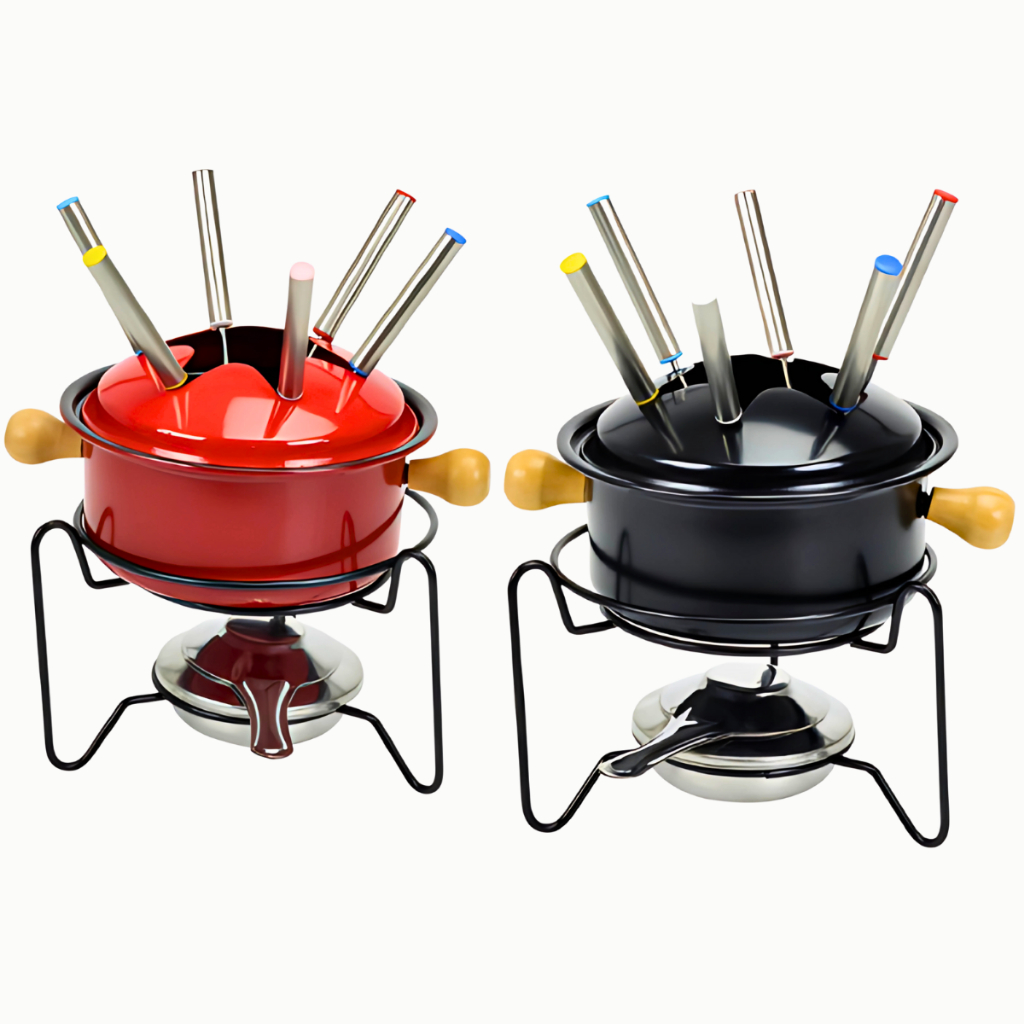 Kit Conjunto Fondue 5 Peças Panela Cerâmica Antiaderente Doce Salgado