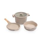 Jogo de Panelas Empilhável Brinox Loft 7 Peças Antiaderente Ceramic Life, Cabo Removível e Fundo de Indução - Areia