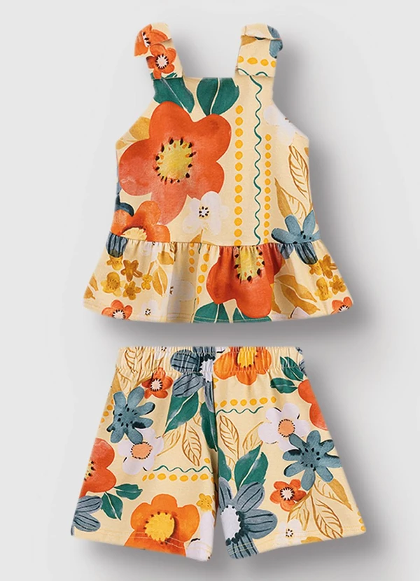 Carinhoso - Conjunto Peplum Floral Menina Amarelo