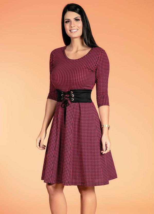 Rosalie - Vestido com Mangas 7/8 Pied de Poule Rosa
