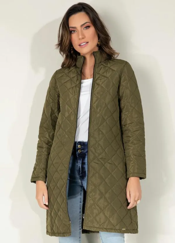Quintess - Jaqueta Puff Verde Alongada com Bolsos