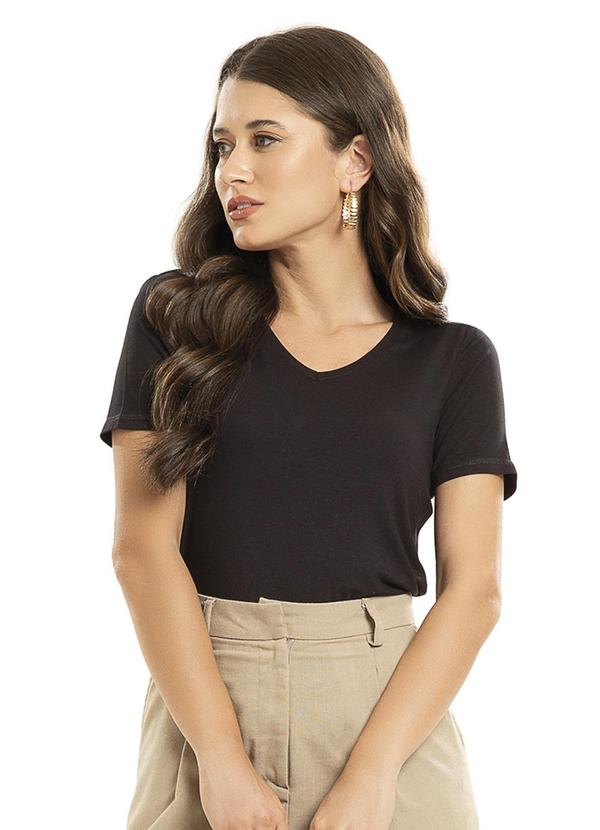 Habana - Blusa Feminina Básica de Manga Curta Preto