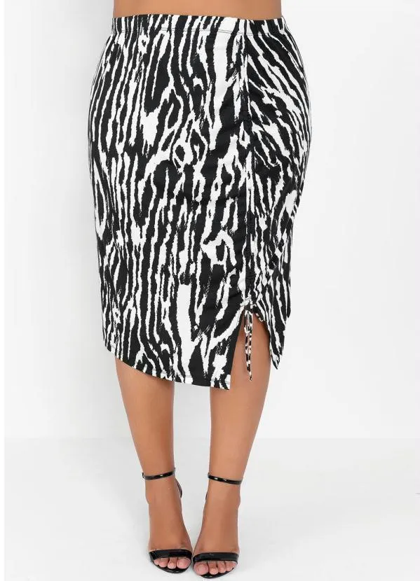 Mink - Saia Plus Size Zebra com Cordel para Franzir