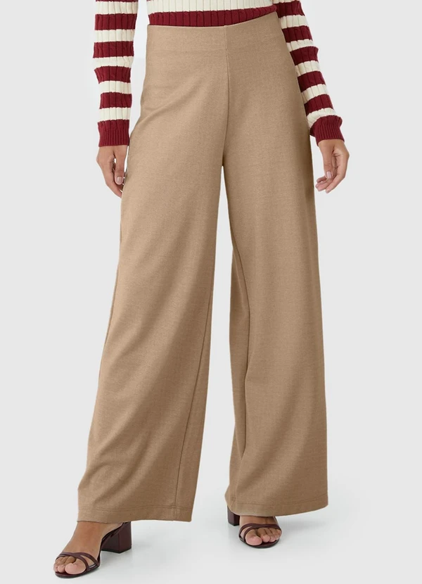 Malwee - Calça Feminina Wide Leg em Jacquard Bege