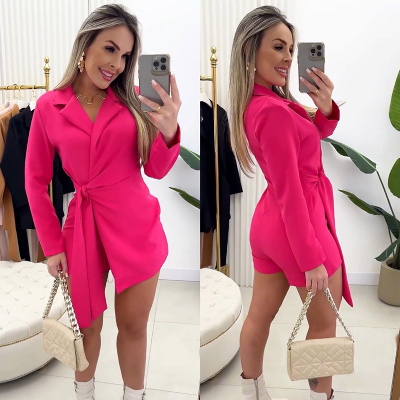 Macaquinho Blazer com amarração na lateral alfaiataria moda inverno