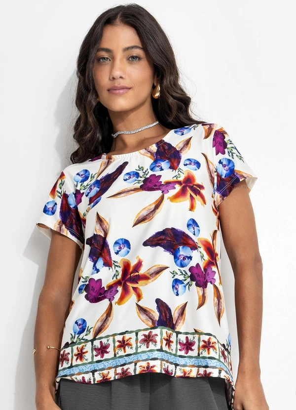 Quintess - Blusa Floral Artístico em Malha de Viscose