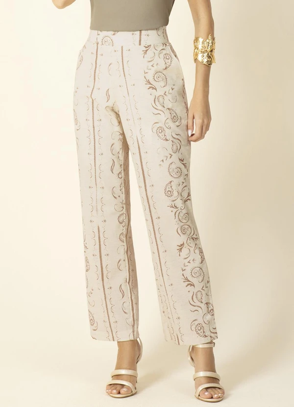Gris - Calça Feminina com Estampa Rotativa Bege