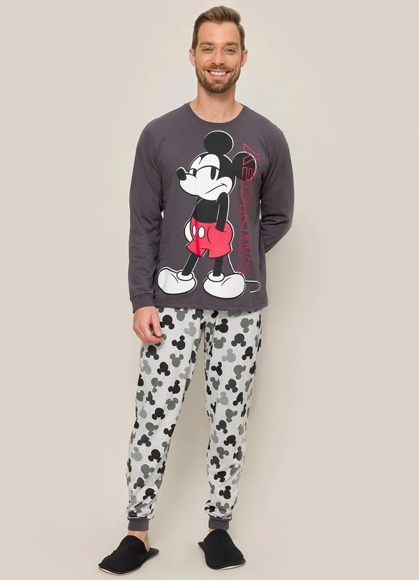 Disney - Pijama Mickey Cinza Escuro em Malha