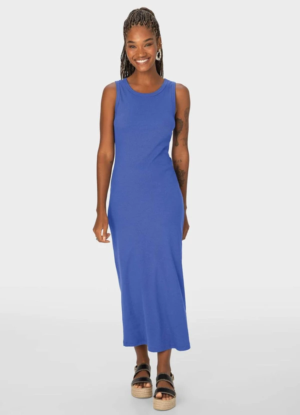 Malwee - Vestido Azul Royal Justo Mídi em Ribana