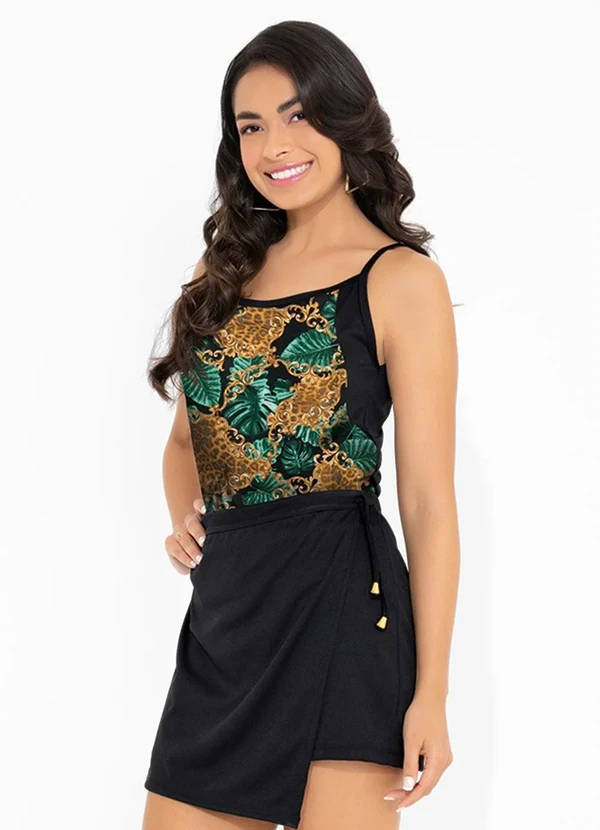 Moda Pop - Regata Folhagem Alcinhas e Recortes