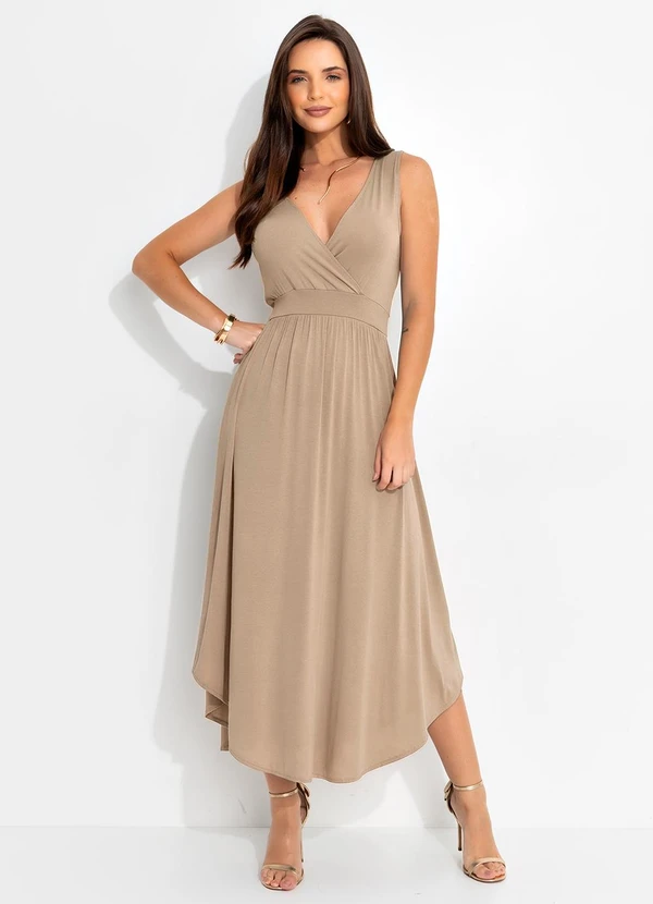 Quintess - Vestido Bege Claro em Malha de Viscose