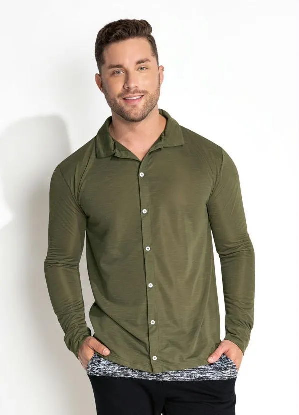 Moda Pop - Blusa Verde Militar com Transparência nas Mangas
