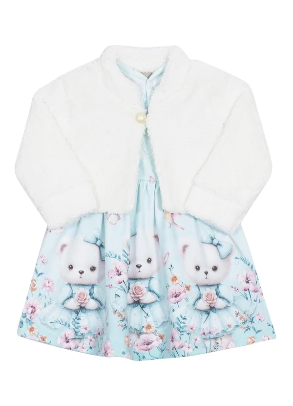 Randa Mundu - Vestido Feminino Cotton Pa / Bolero Pelo Azul
