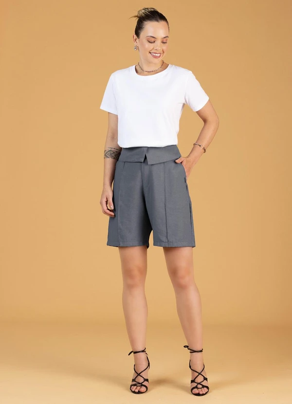Soft Bonni - Short Alfaiataria Adulto Feminino Cinza