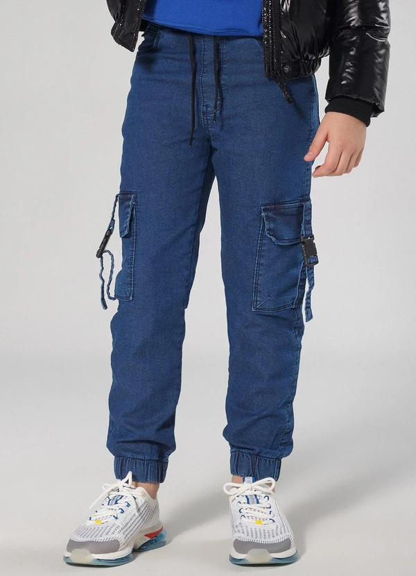 Sun Place - Calça Jeans Infantil Menino Jogger Cargo Azul