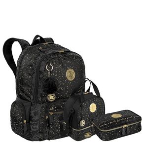 Kit Mochila Carrinho 2 Compartimentos mais Lancheira 2 Compartimentos e Estojo Especial Paul Frank T03 - Preto