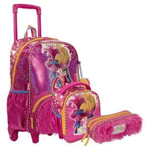 Kit Mochilete Grande mais Lancheira Especial e Estojo 2 Compartimentos Trolls - Sisters