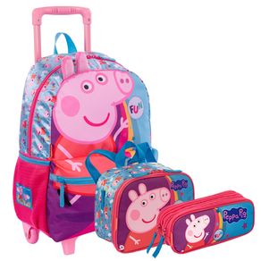 Kit Mochilete Grande mais Lancheira Pequena e Estojo 2 Compartimentos Peppa M Plus Core - Colorido