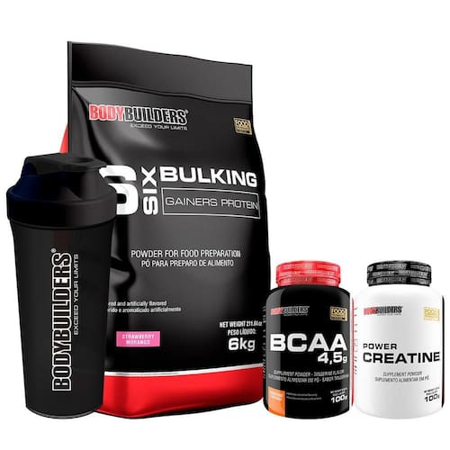 Kit Hipercalórico 6 Six Bulking 6kg, BCAA 4,5 100g, Coqueteleira – Bodybuilders