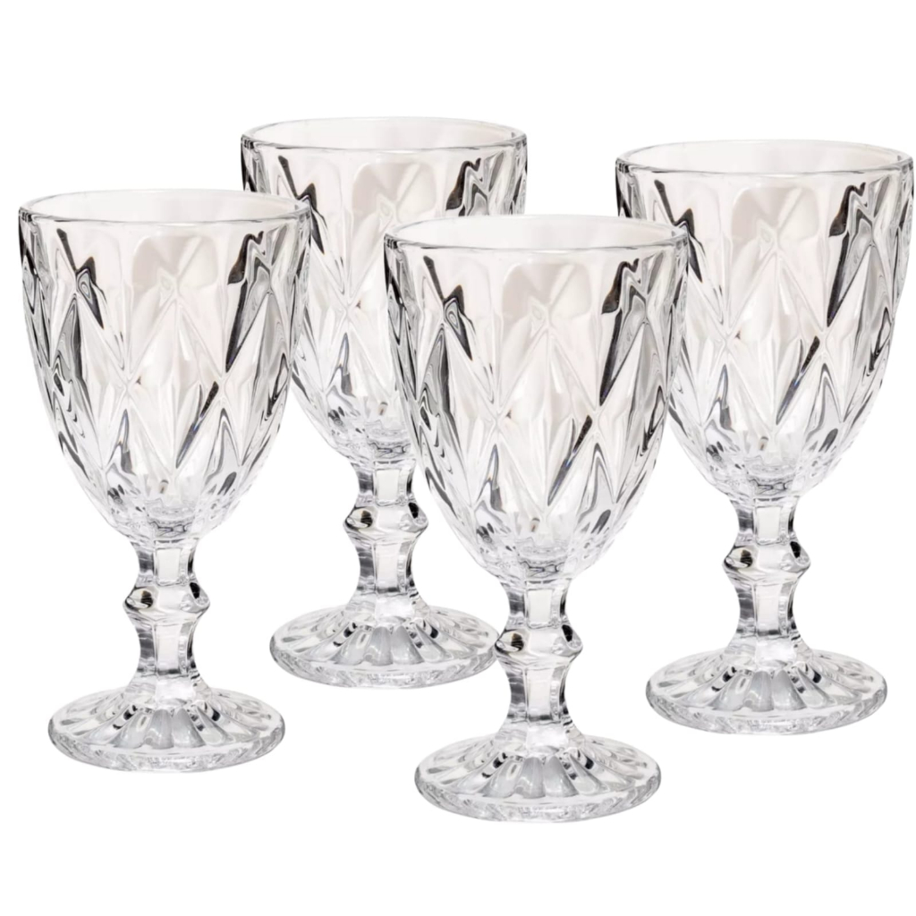 Taça Diamante Kit 4 Copo Vidro Transparente 340ml Bico De Jaca Copos Diamante Agua Taças