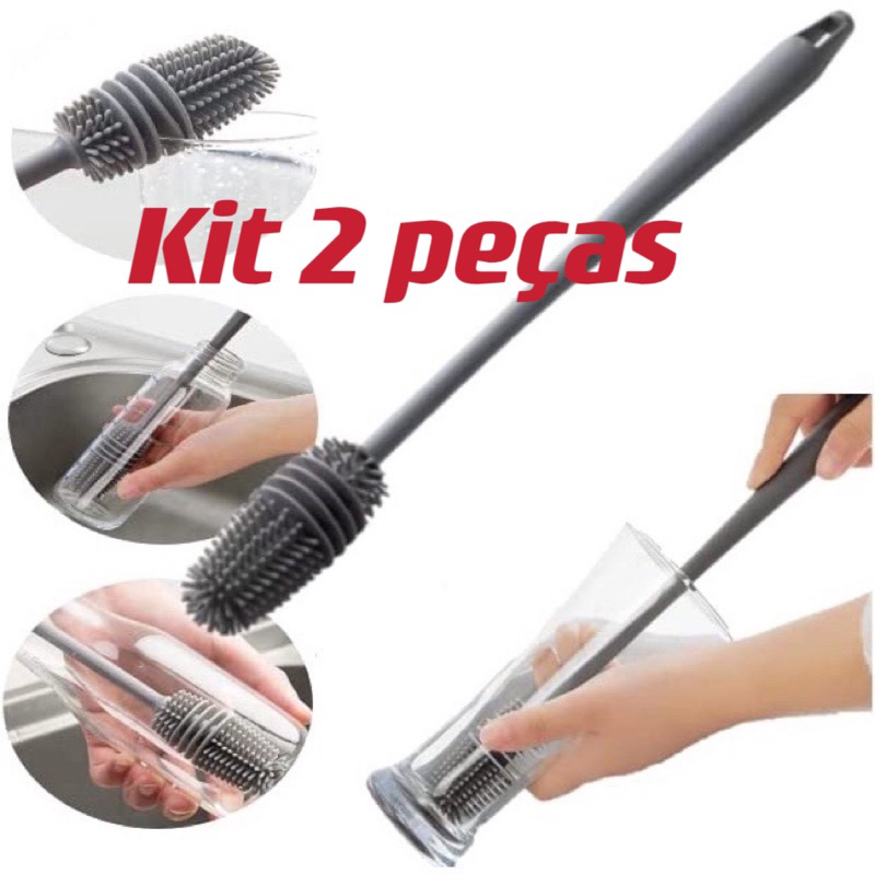 kit 2 peças Escova De Lavar Garrafa Mamadeira Copo Taça Silicone