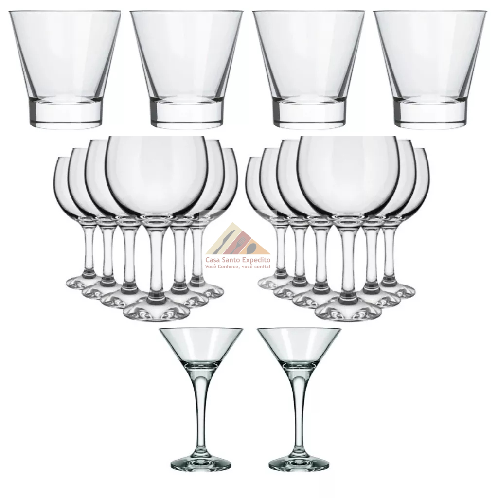 CONJUNTO KIT 18 PÇS - 2 TAÇA MARTINI + 4 COPO ILHABELA 350ML + 12 TAÇA PREMIERE GRAN VINHO