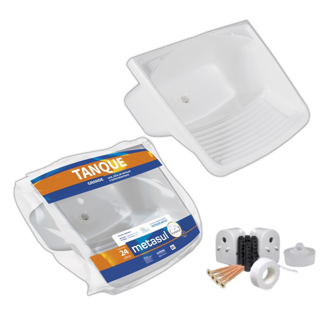 Tanque de Plástico Para Lavar Roupas Lavanderia 24l Branco Com Kit de Instalação