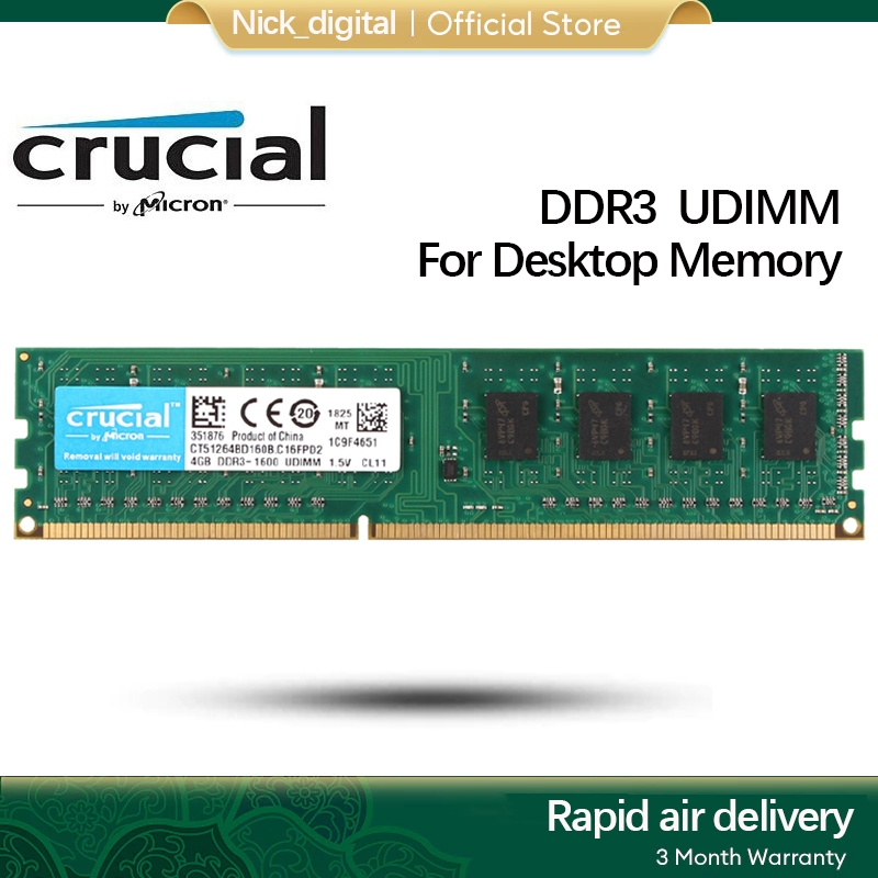 Memória Crucial DDR3 DDR3L 4GB 8GB 1066MHZ 1333MHZ 1600MHZ 1.5V 1.35V UDIMM RAM Para Desktop
