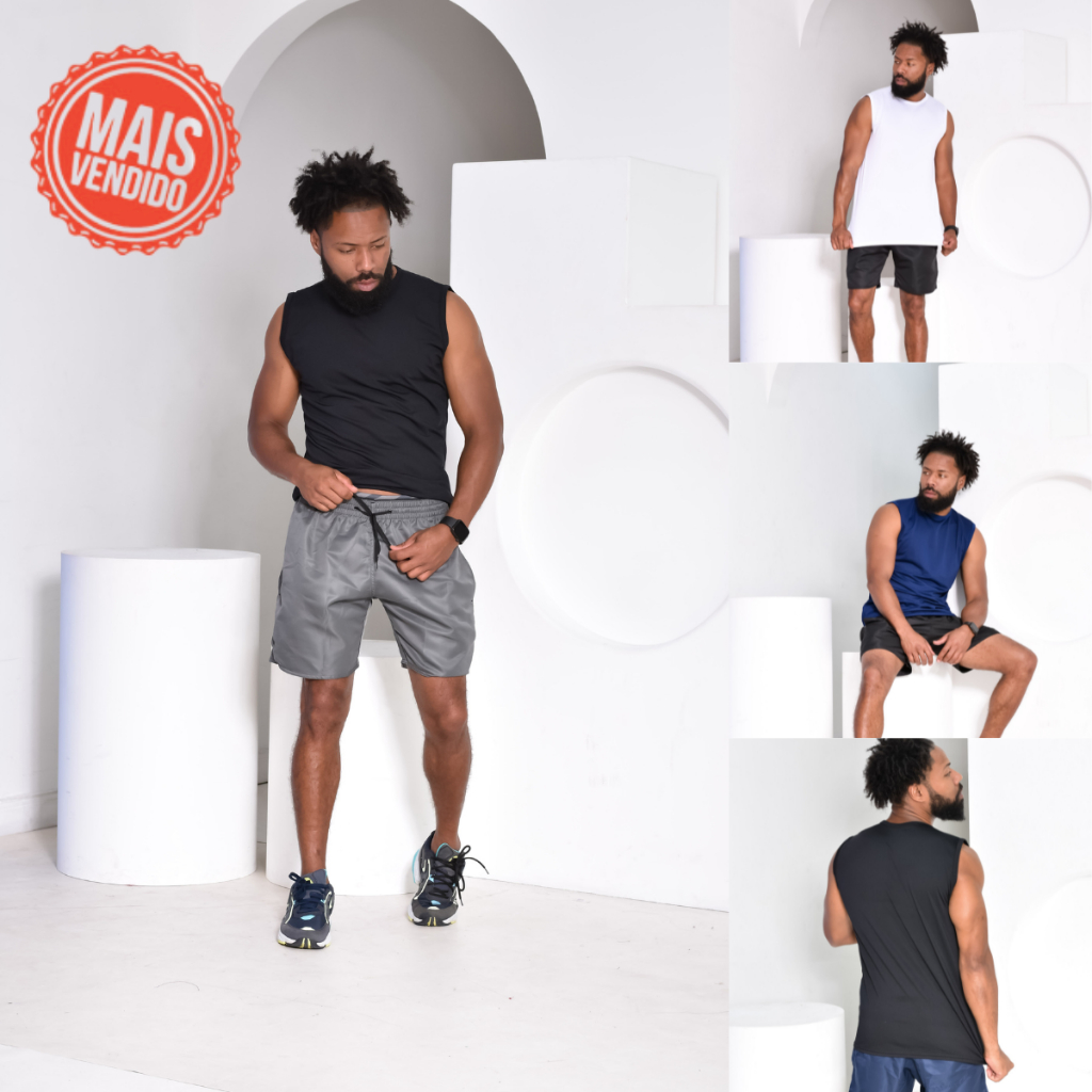 KIT 3 Peças Camiseta Masculina Regata Machão Longline Oversized Academia Fitness Treino