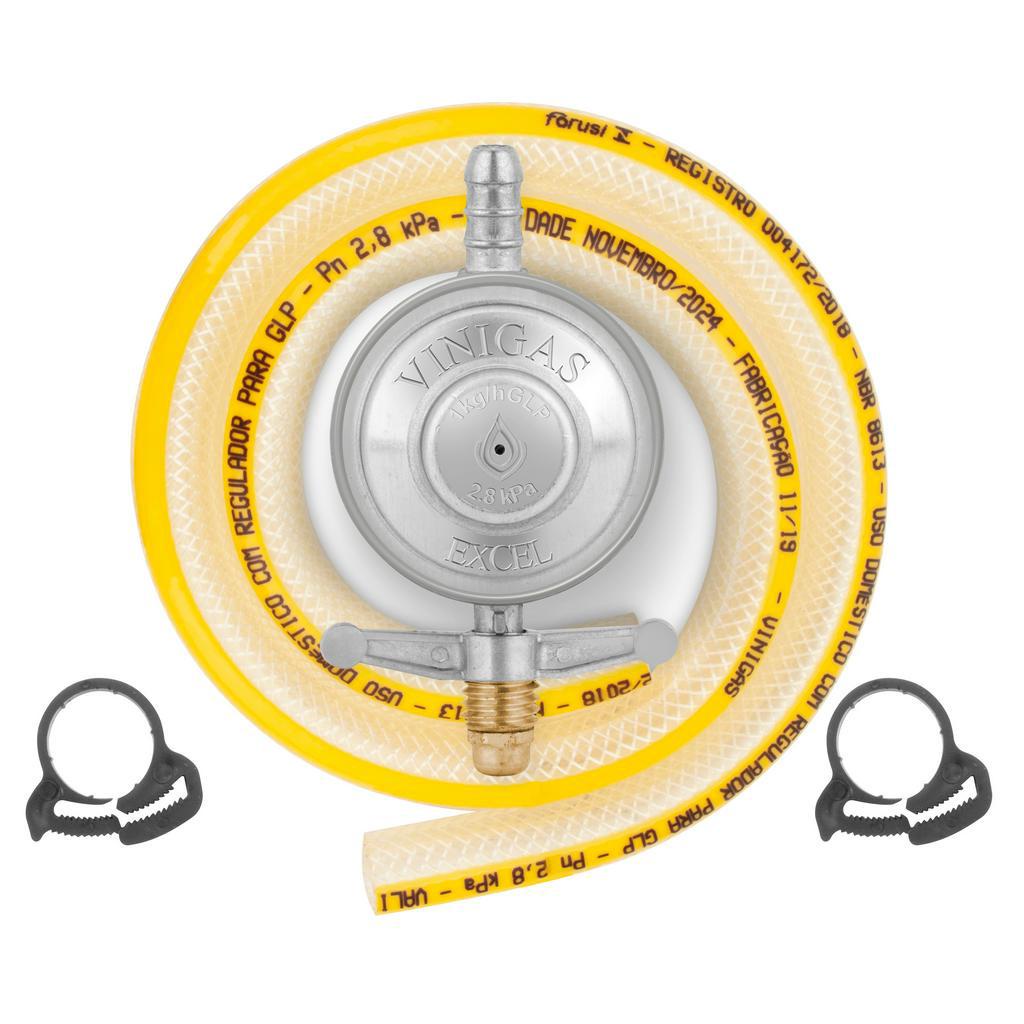 REGISTRO REGULADOR 2KG PARA GÁS BOTIJÃO KIT COM MANGUEIRA 1,20M E ABRACADEIRAS COZINHA VINIGAS