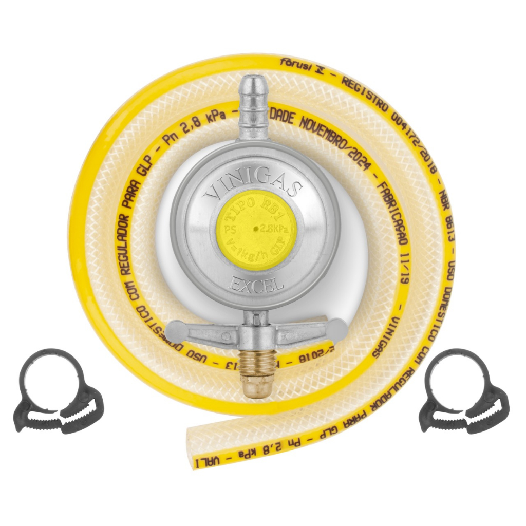 REGISTRO REGULADOR 1KG PARA GÁS BOTIJÃO KIT COM MANGUEIRA 1,20M E ABRACADEIRAS COZINHA VINIGAS