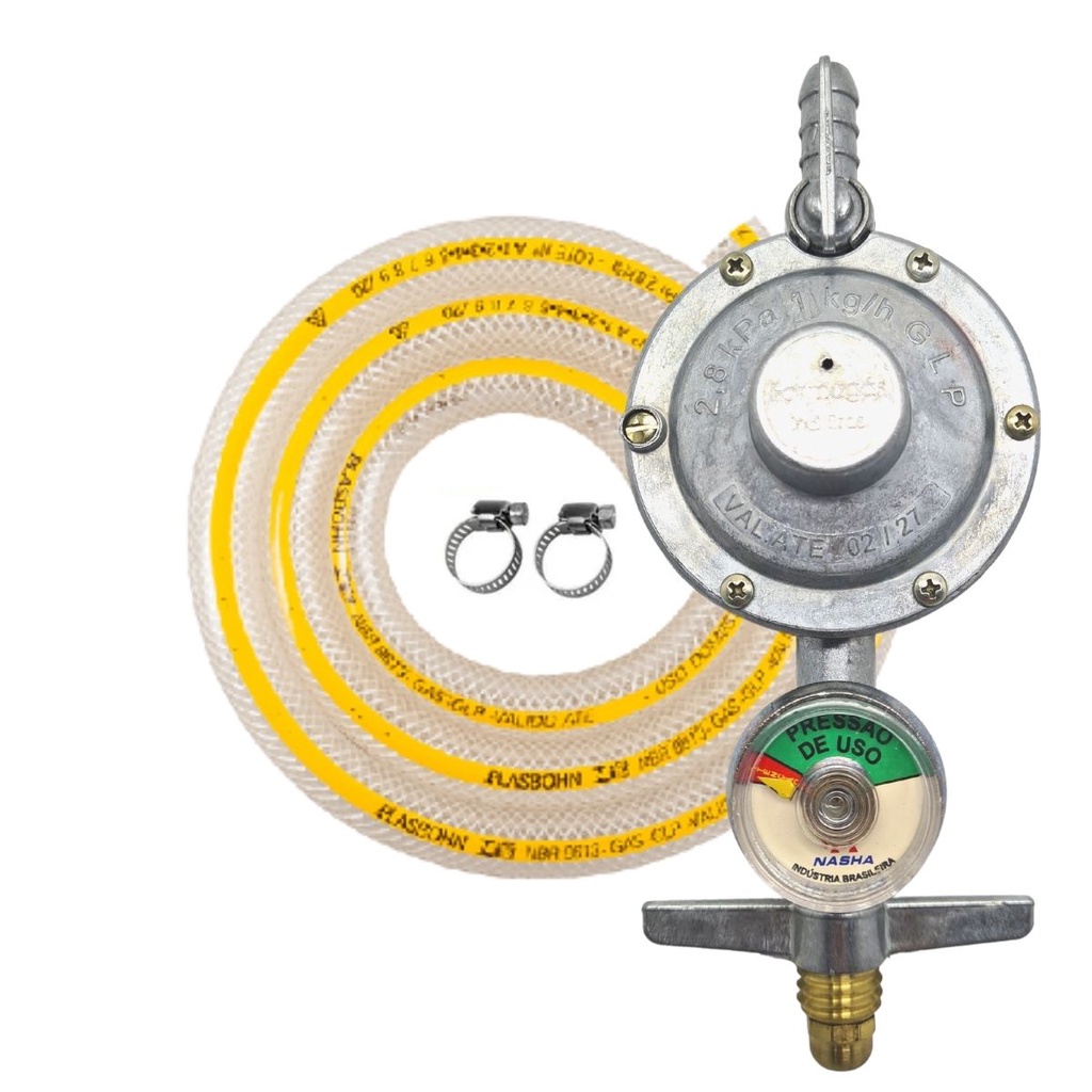 Kit Registro Regulador de Gás Namômetro Mangueira 1,20m e Abraçadeiras