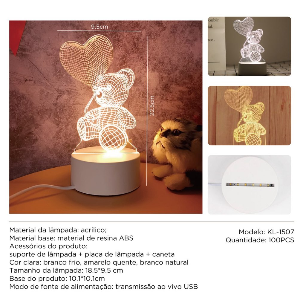 Luminária de Mesa de LED 3D Criativa Luz Noturna Decorativa Bivolt 3 Cores