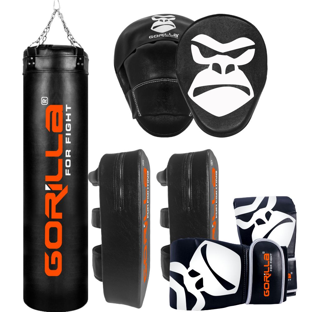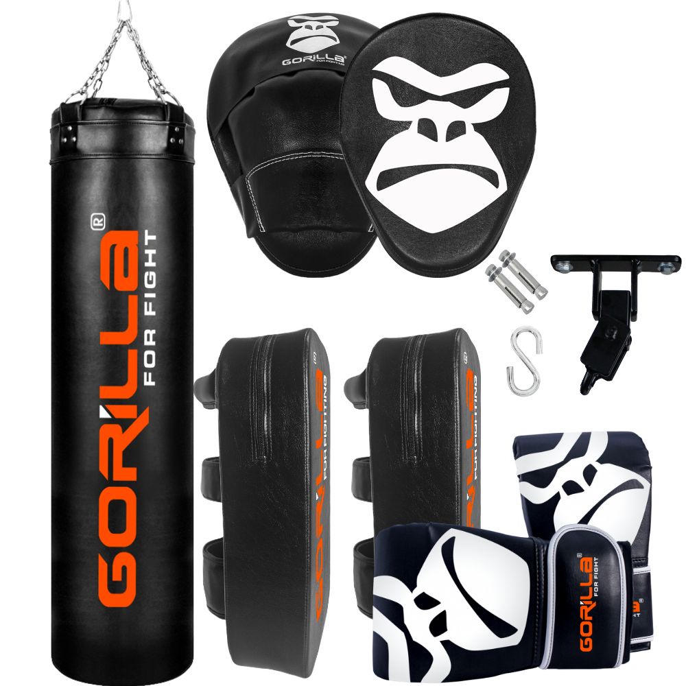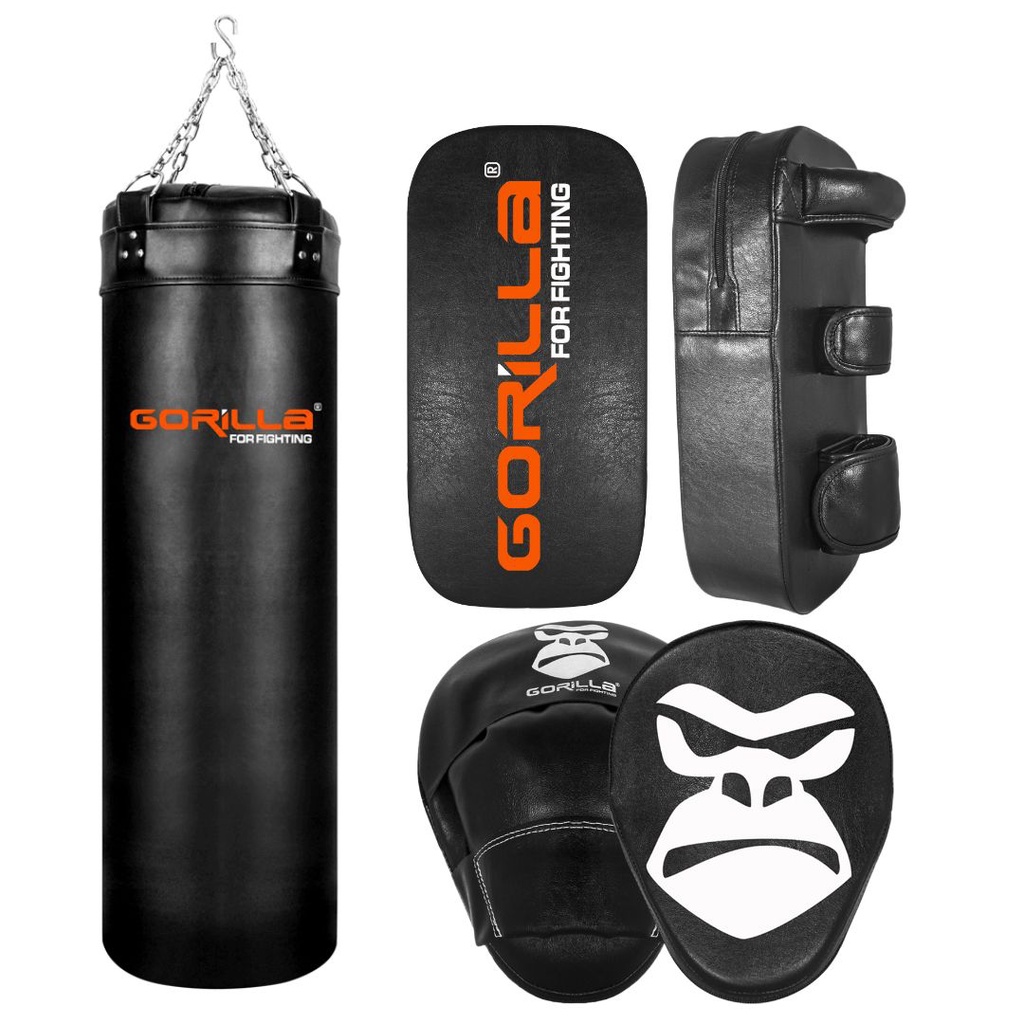 Gorilla KIT Saco de Pancada Reforçado Profissional + Aparador Almofada De Chute Alvo De Pé Gorila Envio Imediato Preço Direto De Fábrica MMA Muay Thai Boxe Kickboxe Treino Luta Artes Marciais Casa Academia Saude Bater Combo Socos Chutes Lazer Exercicio