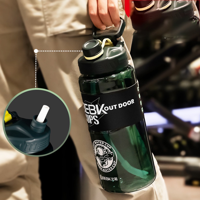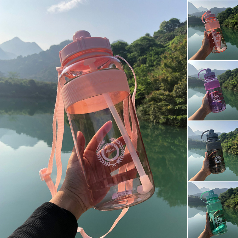 2300ML garrafa de água 2l garrafa de água galão garrafa água bike Garrafa esportiva masculina e feminina super grande capacidade portátil copo de plástico canudo