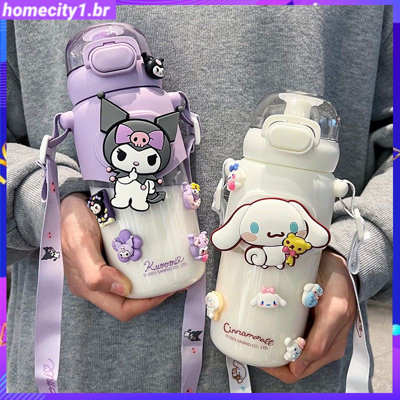 [Pronto] 600ml Kawaii Sanrio Acessórios Kuromi My Melody Cinnamoroll Copo de Água Bonito Beleza Super Grande Capacidade Garrafa de Água de Plástico de Palha
