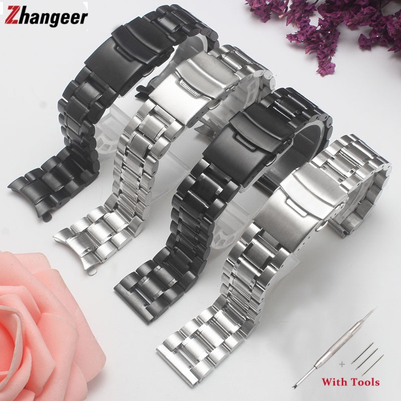 18mm 20mm 22mm 24mm Venda Quente Sólida Cotovelo / Plano Sólida Pulseira De Aço Inoxidável Completa Arc End Pulseira De Aço Seguro Folding Segurança Fecho Fivela Universal Substituição Cinta