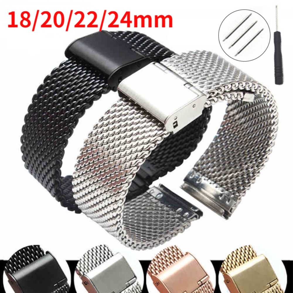 18mm 20mm 22mm 24mm Universal Milanese Pulseira 1.0 Malha De Aço Inoxidável Correia De Pulso Pulseira Black Rose Gold Banda
