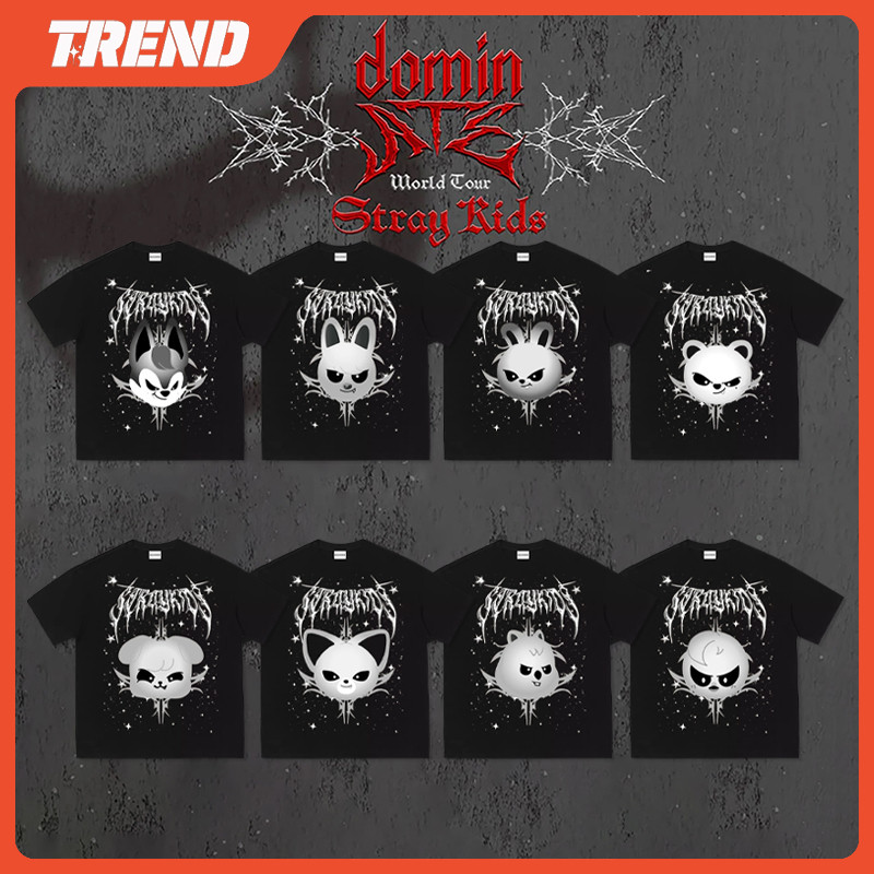 KPOP 2025 Stray Kids " Dominado " SKZOO Merch Camiseta De Algodão Vintage Unissex Moda Coreana Fofa Estampada Manga Curt