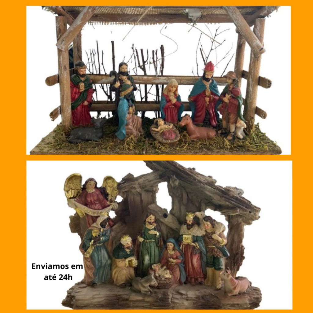 Enfeite De Natal Presépio Em Resina e Madeira