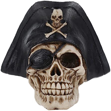 Caveira Crânio de Pirata Capitão Grande Com Chapéu Enfeite Decorativo Rico Em Detalhes Resina Rígida Serve Para Aquário